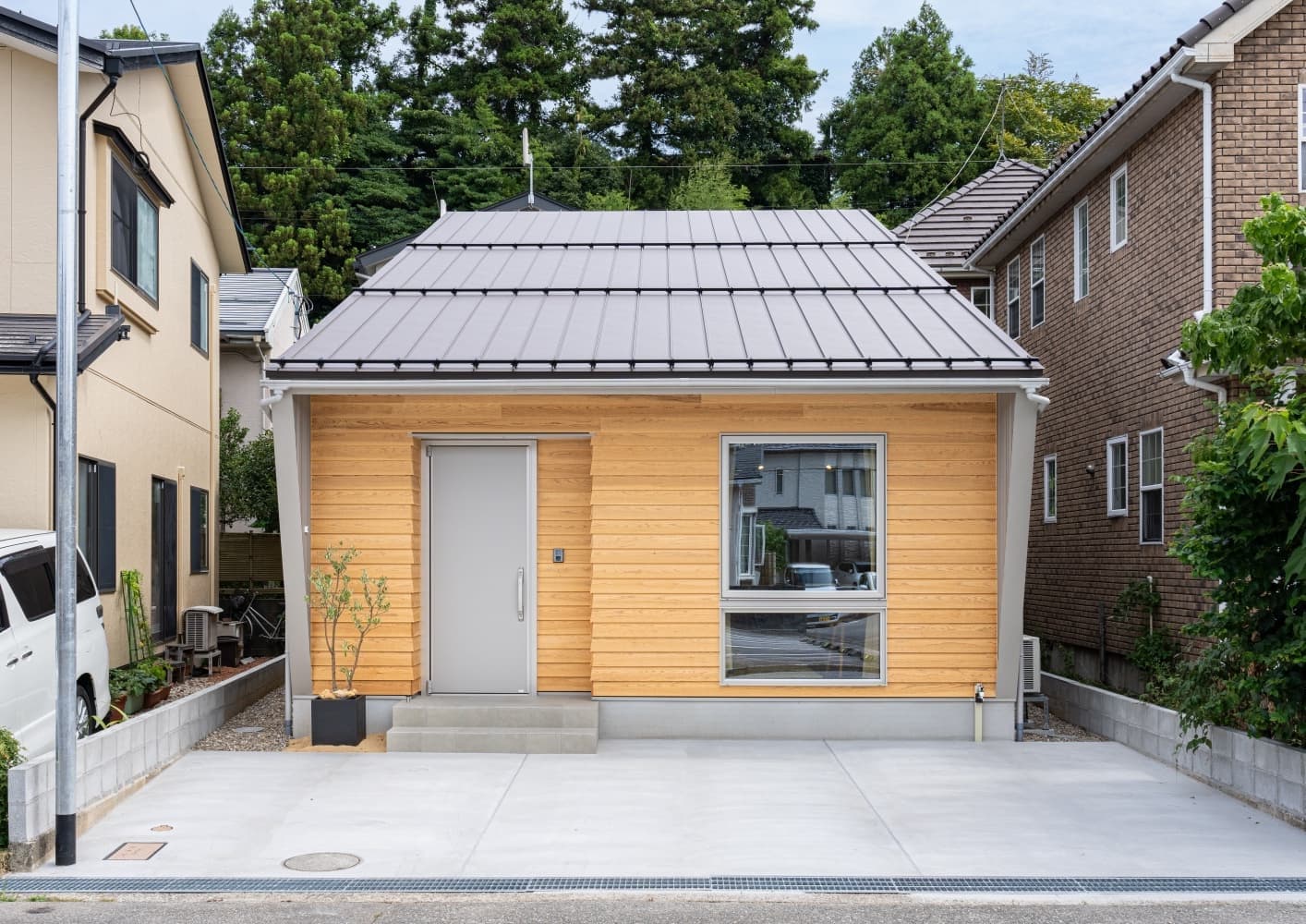 ・横張りガルバリウム×羽目板の洗練された外観
